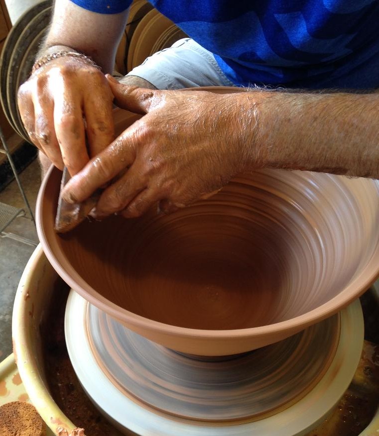 David’s art class as a freshman was a stained glass window course. The teacher was actually a potter, and as David watched her at her wheel, his passion was triggered. The arrangement that started a lifetime of ceramics was an agreement with her that if David finished the window assignment, the teacher would begin teaching him to work with clay at a wheel.